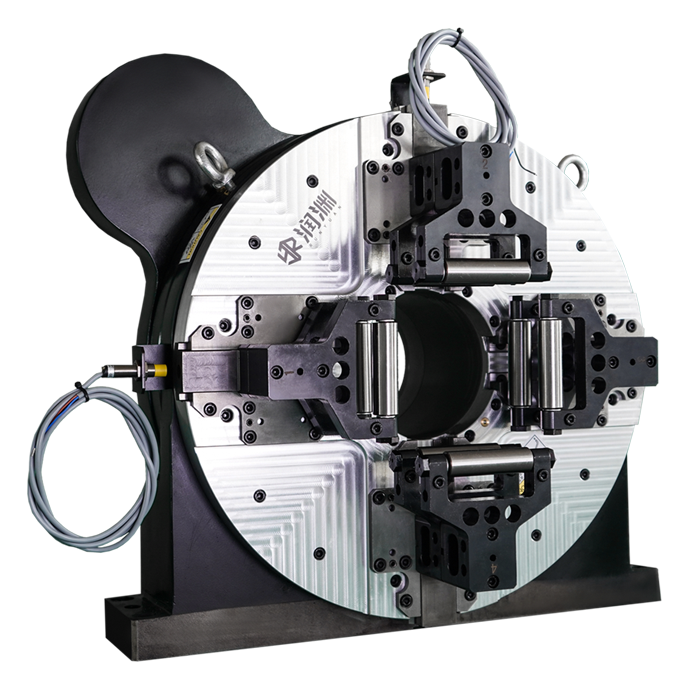 Pneumatisches Klemm design auf beiden Seiten. Die Doppel futter reduzieren die Rohr vibrationen auf ein Minimum und garantieren selbst in komplexen Rohr konfigurationen mit hoher Schnitt geschwindigkeit eine hohe Genauigkeit.