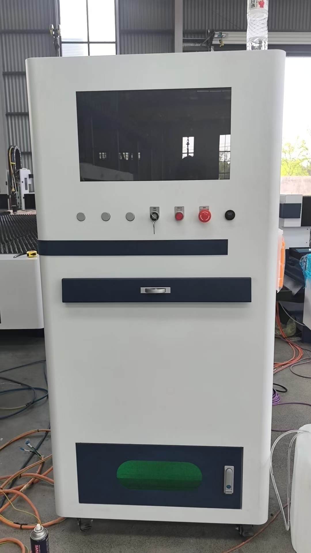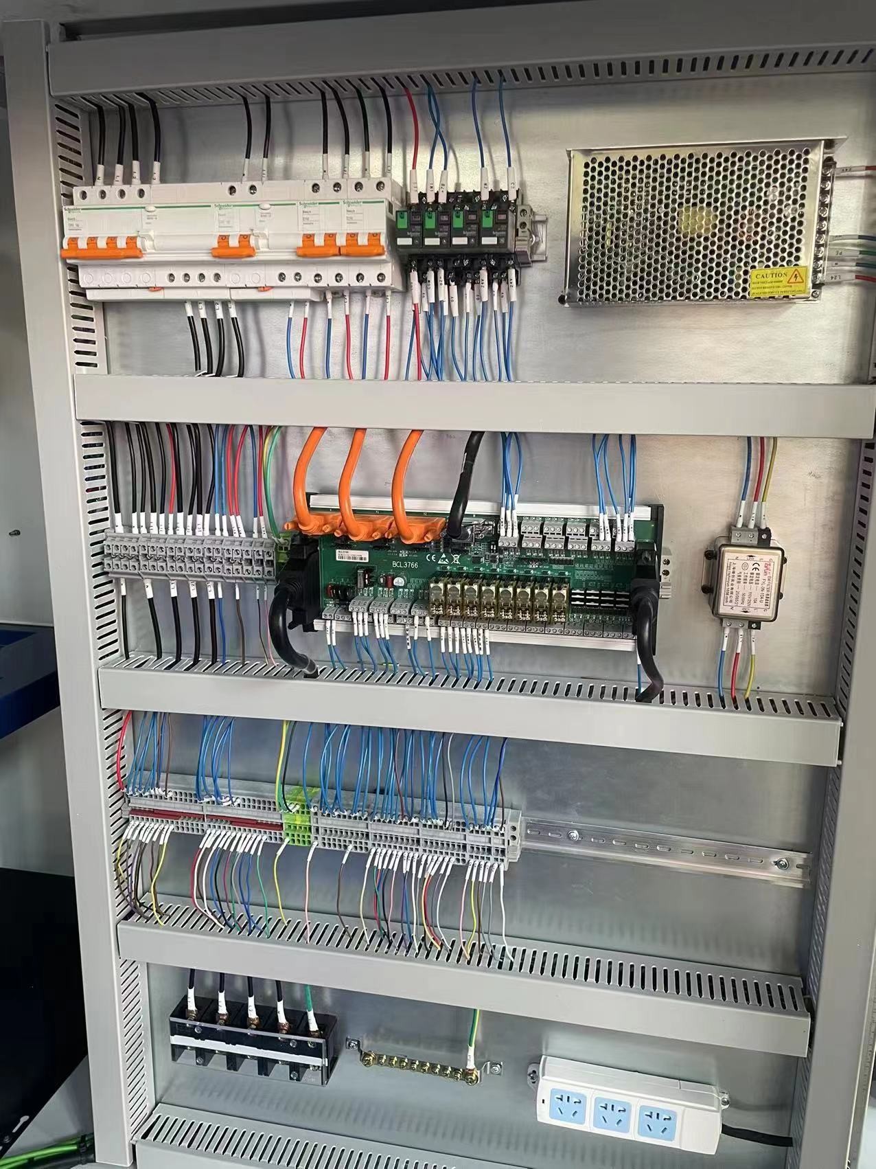 Die Laser quelle (3000W-6000W) kann auch innerhalb des elektrischen Schranks setzen, was notwendig ist, um eine bessere Kühlung durch Außen klimaanlage zu haben, das ist, um den Platz für die Fabrik zu sparen arrangieren